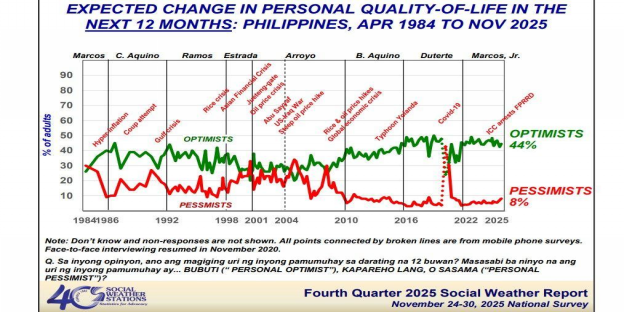 44% of Pinoys expect quality of life to improve in 2026- SWS