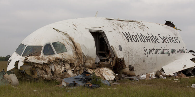 Aerial footage of the crash site showed a long trail of debris as firefighters blasted water on the flames, with smoke billowing from the disaster area.